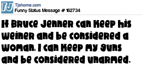 X says If Bruce Jenner can keep his weiner and be considered a woman, I can keep my guns and be considered unarmed.