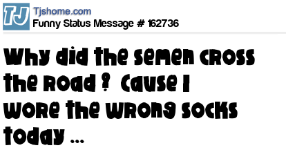 X says Why did the semen cross the road ? Cause I wore the wrong socks today ...