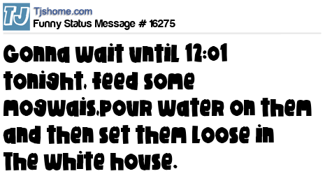 X is gonna wait until 12:01 tonight, feed some mogwais,pour water on them and then set them loose in The white house.