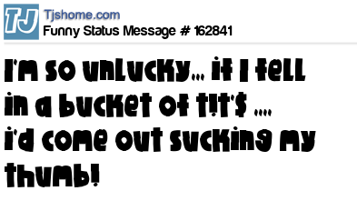 X says i'm so unlucky,,, if I fell in a bucket of t!t'$ ,,,, i'd come out sucking my thumb!