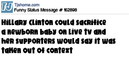 X Hillary Clinton could sacrifice a newborn baby on live tv and her supporters would say it was taken out of context