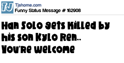 X says Han Solo gets killed by his son Kylo Ren.. You're welcome