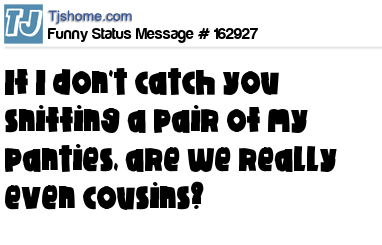 X says If I don't catch you sniffing a pair of my panties, are we really even cousins?