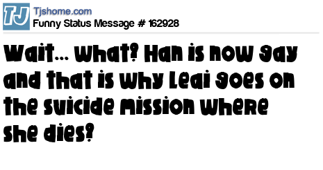 X says Wait... what? Han is now gay and that is why Leai goes on the suicide mission where she dies?