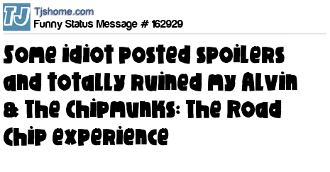 X says Some idiot posted spoilers and totally ruined my Alvin & The Chipmunks: The Road Chip experience