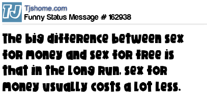 - # 141621 The difference between sex for money and sex for free is that in the long run sex for free costs a lot more.