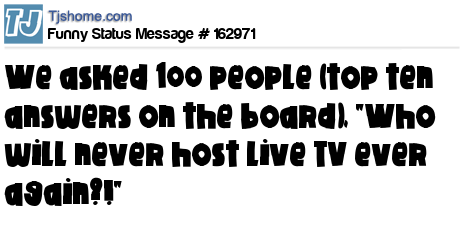 X says We asked 100 people (top ten answers on the board), "Who will never host live TV ever again?!"