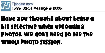 X Have you thought about being a bit selective when uploading photos. We don't need to see the WHOLE PHOTO SESSION.