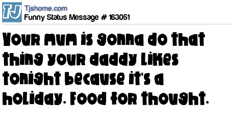 X says Your mum is gonna do that thing your daddy likes tonight because it's a holiday. Food for thought.