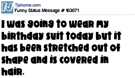 X says I was going to wear my birthday suit today but it has been stretched out of shape and is covered in hair.