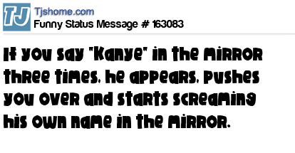 - # 145724 If you say “Kanye” in the mirror three times, he appears, pushes you over and starts screaming his own name in the mirror.