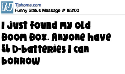 - # 173588 I just found my old Boom Box up in the attic. Anyone have 56 D-size batteries I can borrow?