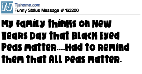 X My family thinks on New Years Day that Black Eyed Peas matter....Had to remind them that ALL peas matter.