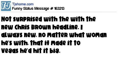 X Not surprised with the with the new Chris Brown headline. I always new, no matter what woman he's with, that if made it to Vegas he'd hit it big.