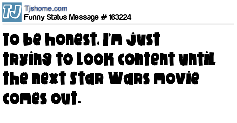 X To be honest, I'm just trying to look content until the next Star Wars movie comes out.