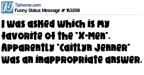 X says I was asked which is my favorite of the "X-Men". Apparently "Caitlyn Jenner" was an inappropriate answer.