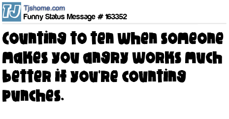 - # 76448 Counting to ten when someone pisses you off works much better if you're counting punches.