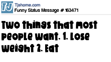 - # 94470 I only want two things in life: 1. Lose weight 2. Eat.