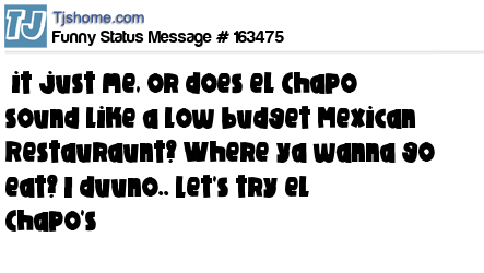 X says it just me, or does el Chapo sound like a low budget Mexican Restauraunt? Where ya wanna go eat? I duuno.. Let's try el Chapo's