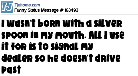 X says I wasn't born with a silver spoon in my mouth. All I use it for is to signal my dealer so he doesn't drive past