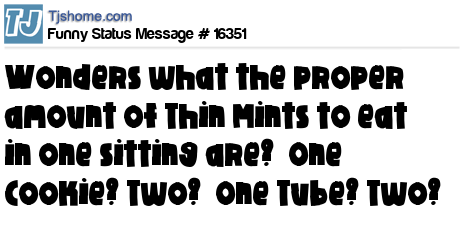 X wonders what the proper amount of Thin Mints to eat in one sitting are? One Cookie? Two? One Tube? Two?