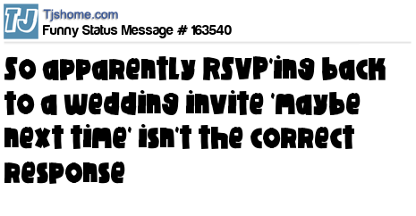 X says So apparently RSVP'ing back to a wedding invite 'maybe next time' isn't the correct response