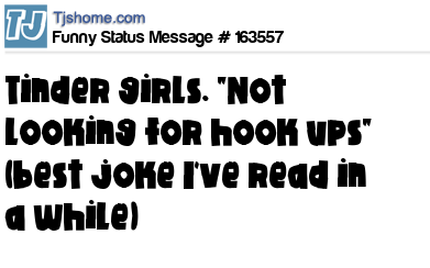 X says Tinder girls. "Not looking for hook ups" (best joke I've read in a while)