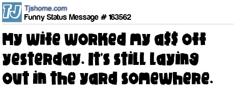 X says My wife worked my a$$ off yesterday. It's still laying out in the yard somewhere.