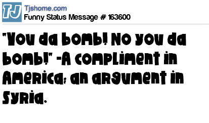 - # 139113 You the bomb" "No you the bomb" A compliment in America. An argument in the middle east...