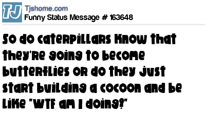 X says So do caterpillars know that they're going to become butterflies or do they just start building a cocoon and be like "WTF am I doing?"