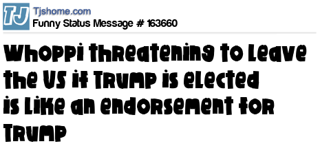 X Whoppi threatening to leave the US if Trump is elected is like an endorsement for Trump