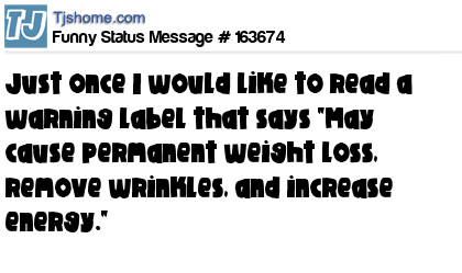 X says Just once I would like to read a warning label that says "May cause permanent weight loss, remove wrinkles, and increase energy."