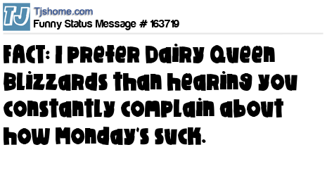 X says FACT: I prefer Dairy Queen Blizzards than hearing you constantly complain about how Monday's suck.