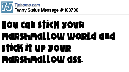 X says You can stick your marshmallow world and stick it up your marshmallow ass.