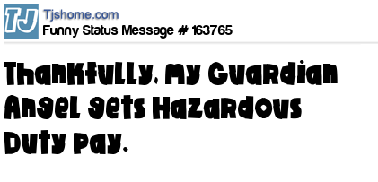 X says Thankfully, my Guardian Angel gets Hazardous Duty pay.