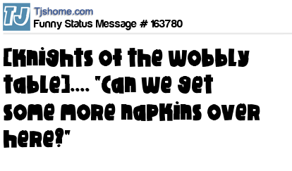 X says [knights of the wobbly table].... "Can we get some more napkins over here?"