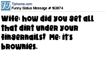 - # 197213 Wife: how did you get all that dirt under your fingernails? Me: it's brownies..