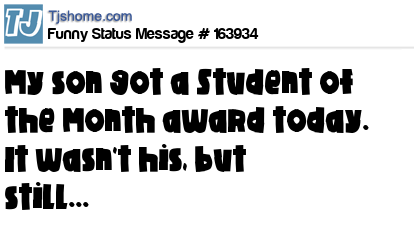 X says My son got a Student of the Month award today. It wasn't his, but still...