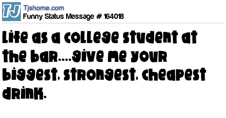 X says Life as a college student at the bar....give me your biggest, strongest, cheapest drink.
