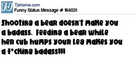 X says Shooting a bear doesn't make you a badass. Feeding a bear while her cub humps your leg makes you a f*cking badass!!!