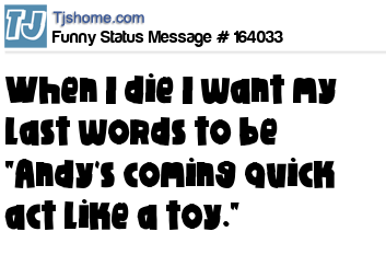 X says When I die I want my last words to be "Andy's coming quick act like a toy."