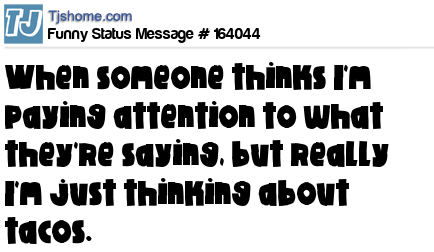 - # 164029 When someone thanks I'm paying attention to what they're saying, but really I'm just thinking about tacos.