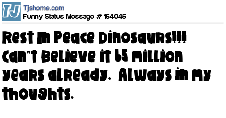 X says Rest In Peace Dinosaurs!!! Can"t Believe it 65 million years already. Always in my thoughts.