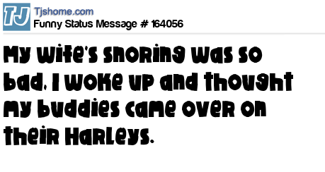 X says My wife's snoring was so bad, I woke up and thought my buddies came over on their Harleys.