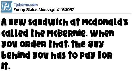 X says A new sandwich at Mcdonald's called the McBernie. When you order that, the guy behind you has to pay for it.