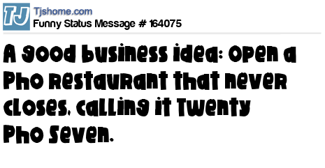 X says A good business idea: Open a Pho restaurant that never closes, calling it Twenty Pho Seven.