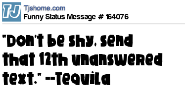 X says "Don't be shy, send that 12th unanswered text." --Tequila