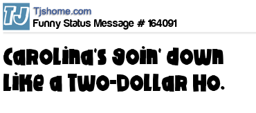 X says Carolina's goin' down like a Two-Dollar Ho.