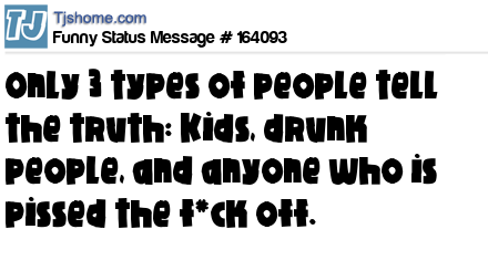X says Only 3 types of people tell the truth: Kids, drunk people, and anyone who is pissed the f*ck off.