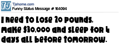 X says I need to lose 20 pounds, make $30,000 and sleep for 4 days all before tomorrow.
